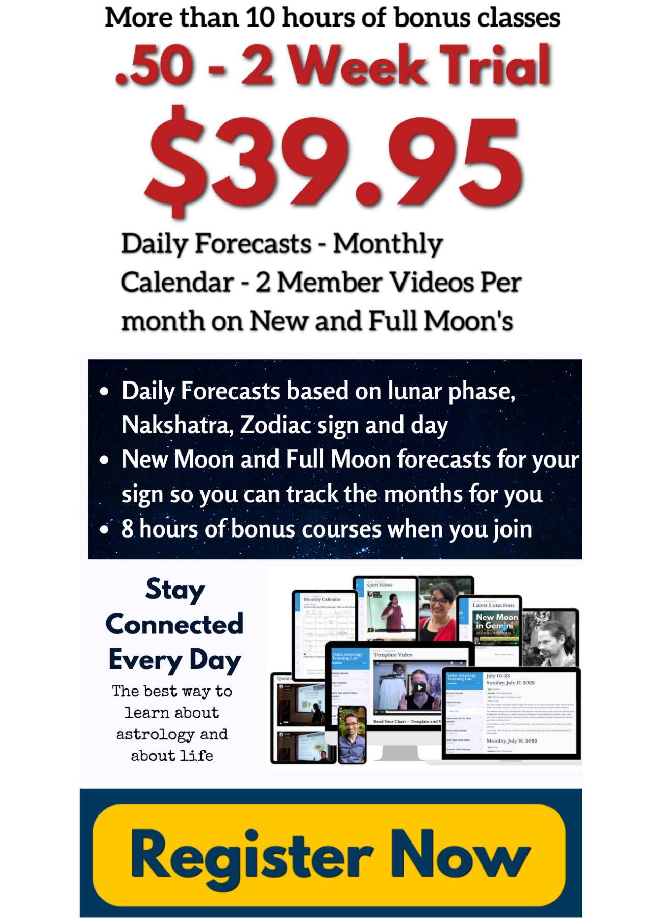 Who is this Membership for?- Beginning Vedic Astrology students – you will see your understanding of Vedic astrology accelerate at rocket speed, with the daily forecasts and the twice weekly updates.